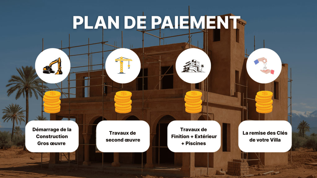 Nous proposons plusieurs plans de paiements, pour que l'achat d'une Villa à Marrakech soit accessible au plus grand nombre.